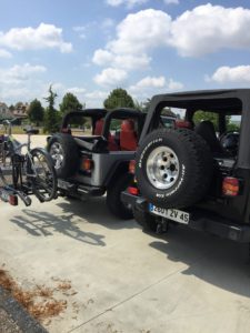 En effet aujourd’hui nous pouvions observer une magnifique Fiat 124 spyder, juste à coté de deux grosses Jeep Wrangler.