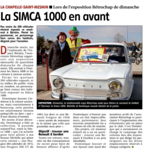 MICHELLE ET DOMINIQUE A L’HONNEUR par Raymond|Publié 27 mars 2018 Bel article dans la République du Centre ce mardi…merci à Jean-Marie car Michelle et Dominique meritent cet honneur!