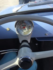 Apres avoir rencontré Dominique et sa Simca 1000, j’ai eu l’occasion d’admirer de nombreuses Alpine A110 ou A 310. Mais alors que je m’apprêtais à partir, une superbe Fiat 500 modèle N d’Avril 1960 arriva sur l’esplanade de Béraire. A son bord, Bruno et ses 3 enfants.