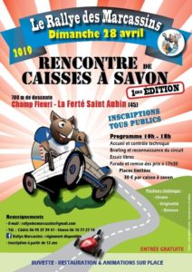 A l’issue de notre RDV de ce dimanche 28 avril, nous proposons à ceux qui sont intéressés de prolonger cette matinée par un déjeuner pris au restaurant FIRST GRIL zone de la Chistera à La Chapelle St Mesmin (21,90 € par personne tout compris) puis de nous rendre pour ceux qui veulent à La Ferté St Aubin pour assister à la 1ère rencontre des caisses à savon.
