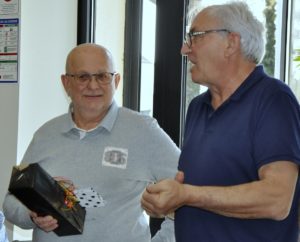 Puis ce fût un peu la « débandade » pour rejoindre ORGERES en BEAUCE entre ceux qui ont traversé le gué et ceux qui n’ont pas oser!Finalement on se retrouve tous vers 12H45 pour déjeuner soit chez EMILIA soi au Ste BARBE car pour satisfaire notre groupe de 83 personnes il n’a pas été possible de regrouper tout le monde chez EMILIA.. l’accueil de nos restaurateurs a été très chaleureux, merci pour la qualité du service et des repas servis dans ces deux établissements. Nous avons profité de ce moment de convivialité pour remettre deux cartes signées de tous et un cadeau à Jean Marie BARDY, adhérent du club, membre de notre Comité Directeur correspondant local de la République du Centre qui quitte définitivement la région pour rejoindre son « port d’attache » ALBI!