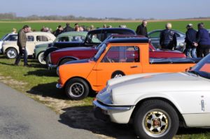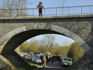 Très belle journée ensoleillée pour notre 36ème rallye promenade!. 39 véhicules ont pris le départ à Chaingy après l’accueil café, viennoiseries et formalité administratives faites au CAMBIEN où nous avons été très bien accueillis par les propriétaires. Michel FAUGOUIN, maire adjoint nous a fait l’honneur d’assister au départ. Nous avons pris la direction d’e HUISSEAU SUR MAUVES, à EPIEDS nous avons récupéré Didier DEPUSSAY et sa VOLVO 1800. Après un regroupement à NIDS nous avons poursuivi notre route pour rejoindre la Vallée de la Conie. Un arrêt après PERONVILLE nous a permis de découvrir le pont rendu célèbre dans le film « Le CERVEAU » Alors polémique c’était celui-ci ou un autre plus loin? Nos deux Didier – originaires de la région – sont formels c’est bien l’authentique..ils sont venus dans leur jeunesse assister au tournage des différentes scènes