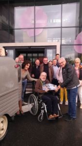 Ce dimanche nous sommes allés rendre visite aux résidents de l’EHPAD de Huisseau sur Mauves pour répondre à une invitation de Marie Claude animatrice dans cet établissement..Une quinzaine d’adhérents ont rejoint l’établissement avec leur véhicule :: SIMCA CHAMBORD, SIMCA 1000, SPIDER 124, VOLVO 80, RENAULT 5, 2CV DOLLY, PEUGEOT 204, CG, MERCEDES, SMART, 2CV FAMILISTERE de Julien , MERCEDES, et une FORD MUSTANG récemment acquise avec une famille venue d’Alsace!!..Hélas tout comme l’an dernier en raison de la pluie incessante les résidents n’ont pas pu sortir de l’établissement pour voir de près nos véhicules…Lors d’une très belle réception organisée par Marie Claude nous avons pu avoir un long temps d’échanges avec quelques résidents notamment sur les véhicules qu’ils ont eu au cours de leur vie: 2 CV, PEUGEOT 403, CITROEN B2…bref merci à Marie Claude pour cette invitation nous reviendrons en mai ou juin 2020 en espérant que le soleil sera de la partie…un reportage va paraître cette semaine dans la république du Centre en milieu de semaine..