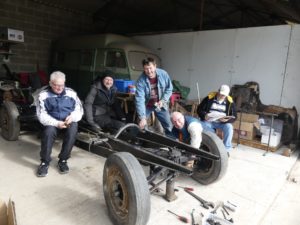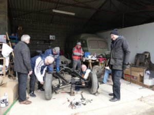 Ce lundi, deuxième journée de travail à BACCON. Résumé d’une journée, arrivée du groupe entre 9H et 9H15…nous étions 11 hier avec l’arrivée de deux petits nouveaux « Alain et Pierre « ….discussions autour d’un café et viennoiseries apportés par Serge et Denis…alors qui a été à la Bourse de Sandillon, comment on s’organise aujourd’hui, que mange t on ce midi….On se répartit par groupe pour la matinée: un groupe va trier, charger lsur deux remorques les pièces que l’on va tenter de vendre à la bourse de BACCON…eh les gars elle sera maintenue cette bourse avec le coronavirus?..le groupe en profite pour ranger et trier les pièces de la 402 ….Une décision est prise tout ce qu’on ne vendra pas à 16H00 sera donné gratuitement à des exposants spécialistes de bourses…ou prendra la direction de la déchetterie!
