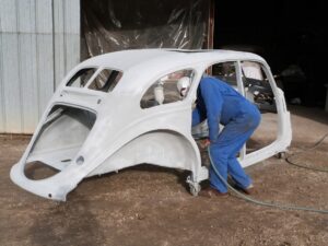 - Poursuite de la préparation des différentes pièces de carrosserie de la 402 toutes sablées, protégées par un antirouille …un travail minutieux, très long pris en charge essentiellement par Xavier, Alain, Robert