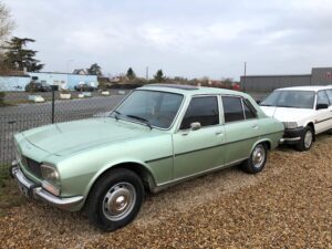 Chez un marchand de véhicules d’occasion situé sur les bords de la 2052 à Chaingy il y a une PEUGEOT 504 verte à vendre.