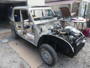 Après « Marquise » , la 4CV partie dans le Béarn c’est « DYANA » qui fait l’objet de toutes nos attentions. d’ailleurs l’équipe tient à jour un carnet de santé avec photos, liste des travaux réalisés, dépenses financières , sur l’évolution du chantier…