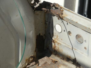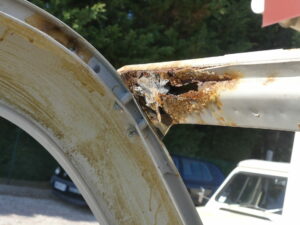 Ils sont contents car ils vont avoir du boulot. A chaque fois qu’ils me taquinent avec une brosse métallique pour gratter mon bronzage, ils font un trou dans ma carcasse, certains appellent ça de la rouille (regardez les photos), y en a deux qui sont champions pour cet exercice. Il parait que je fais de la corrosion suite à mon séjour prolongé à l’air marin de Belle Ile en Mer!