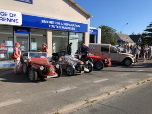 Deux LOMAX, un PEMBLETON et une 2 CV camionnette et nos cinq aventuriers ont pris la route sous les applaudissements. Ils doivent rejoindre TOULON jeudi soir pour embarquer pour la Corse.