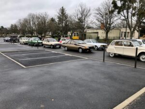 12 véhicules ont été exposés: François avait déplace deux De Dion Bouton, Patrick sa Cox, Bernard son R 16, Nathalie son R 5, Dominique et Michelle sont venus avec la Fuego, Didier avec son Coupé Fiat 124,Regis et sa Simca 1000, Serge nous a rejoint avec sa 2CV Dolly, Julien et le président sont venus avec la Dyane du club, Jean-François avec son Alfa, et Jean Pierre avec son imposante Chevrolet rose bonbon!