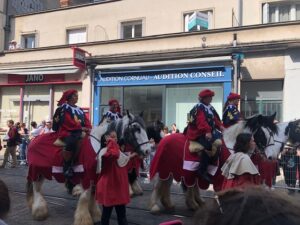 Didier BARBEREAU avait quitté le siège de sa TRACTION pour la selle d’un cheval accompagnant Jeanne. il avait fier allure dans son costme d’époque!