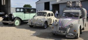 15 véhicules dont 11 avant-guerre et les 33 participants dont plusieurs en costumes d’époque ont rejoint Baccon dès 9H00 pour l’accueil café viennoiseries..A 9H45 le convoi précédé par un véhicule sonorisé a pris la direction de St Ay pour un petit arrêt avant de reprendre la route vers Huisseau pour rendre visite aux pensionnaires de la résidence du Parc des Mauves. Ils ont pu admirer ces belles mécaniques qui ont été survolées par une escadrille d’avions de retour du défilé au dessus des Champs Elysées !!.