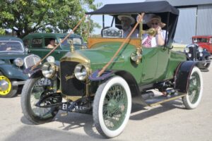 Puis le convoi s’est élancé vers Meung sur Loire pour le déjeuner…une pause fatale à la RENAULT NN du président, victime d’un coup de chaud (?) n’a pas voulu repartir! Pauline MARTIN maire de la commune accompagnée de son premier adjoint Matthieu MIGEON sont venus nous saluer et nous remercier pour l’organisation de cette animation.