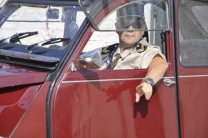 18H00 il faut rejoindre la Renardière pour le dernier verre avant que chacun ne rejoigne son domicile! Un grand merci à toutes et à tous avec une mention particulière à Patrick, nouvel adhérent venu en tenue de gendarme tel l’adjudant CRUCHOT qui aurait troqué sa MEHARI pour une 2 CV CHARLESTON..
