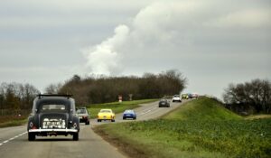Un trajet retour sur de petites routes avec une difficulté inattendue: emprunter une route barrée nous obligeant à faire un crochet dans un champ boueux…des travaux non répertoriés lors de la reconnaissance du parcours…