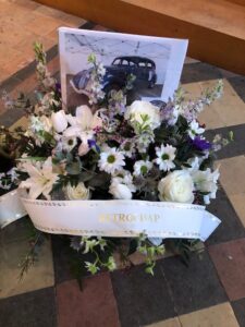 Notre club représenté par une dizaine d’adhérents a déposé un très joli coussin où figurait une photo de la Peugeot 402 ayant appartenu à Marceau.