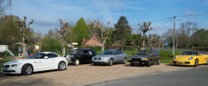 Il faut reprendre le volant pour l’arrêt casse croûte où nous rejoignent Joël et son R8, Denis et sa SM, Luc et son Opel…désormais nous sommes au complet: 34 véhicules et 75 personnes plus la petite dizaine de « Toutous » bien sages!!