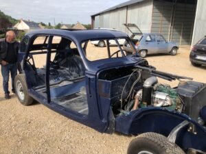 La 402 a revêtu sa superbe couleur d’origine Bleu amiral Peugeot…La restauration se poursuit