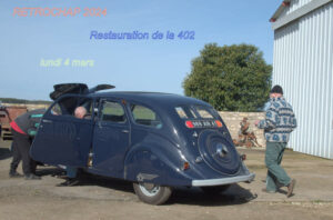 Le dimanche 28 avril sera exceptionnel car correspondant aussi à la date de la JNVE nous organiserons notre rendez-sur la journée car nous présenterons officiellement notre PEUGEOT 402 de 1936 achetée en 2016 chez M. HENAULT à Chaingy dont nous avons pratiquement achevé la restauration complète de ce magnifique véhicule. Il est passé au Contrôle Technique avec succès le 8 mars…il reste quelques petits détails de finition..Lors de cette journée plusieurs animations seront mise en place: nous souhaitons réunir toutes les 402 du Loiret, les véhicules qui dormaient à Chaingy aux côtés de la 402…des animations danses de années 30, une restauration sera proposée sur place et nous laçons un appel pour réunir dans le Hall de Beraire des objets correspondant à l’année 1936, année du Front Populaire et des JO de Berlin …si vous avez ce type d’obets à nous proposer contactez nous au 06 03 15 83 25.