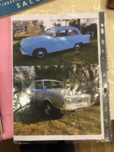 Une GLAS 1304 CL restaurée et en parfait état de marche: 7 CV mateur avec distribution par courroie crantée, arbres à cames en tête, propulsion, quatre vitesses au plancher, pneus neufs alternateur 12 V…tout fonctionne! C’est le seul exemplaire en France. cette marque a été rachetée par BMW. Jacques est aussi en possession du manuel de réparation en français ainsi que le catalogue des pièces détachées