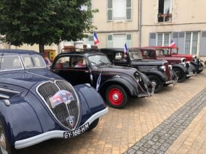 Nous avons mobilisé 12 véhicules d’avant-guerre qui ont rejoint pour 9H la place de la mairie sous un petit crachin d’automne! Merci à Christian, Gérard, Lionel, François, Jacques,Dominique, Xavier, Jean-Pierre, Alain, Yves, Bernard et leurs co-pilotes costumés – Maran, Michelle, Monique, Claudine, Christiane – d’avoir répondu à notre appel…Monsieur David JACQUET maire de la commune nous a accueilli très chaleureusement autour d’un café lors de cette exposition statique place de la mairie où un public nombreux est venu admirer nos belles mécaniques et les participants en tenue d’époque!
