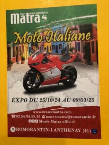 Le musée MATRA de ROMORANTIN- LANTHENAY organise une exposition de motos italiennes du 25 octobre 2024 au 9 mars 2025