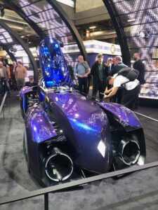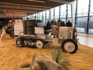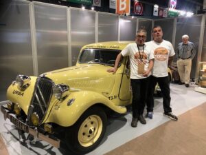 En une journée nous n’avons pas le temps de tout voir mas nous avons aimé: l’exposition consacrée aux 70 ans de la DS, le stand RENAULT qui exposait trois véhicules 4L, R5, R17 en version thermique et la version électrique mais aussi une belle surprise avec la Filante un prototype qui revisite la 40CV des records de 1924, les très jolis stands Mercedes, Skoda, Toyota,MItsubishi, Mazda M5, Cadillac avec de jolis modèles montrant l’évolution des différents modèles proposés par ces marques….On a adoré l’hommage rendu à Adolphe KEGRESSE, un ingénieur de génie avec la présence d’une dizaine de véhicules autochenilles dont il est à l’origine ..et surprise puisque Bernard DELETOILE notre adhérent expose une Traction repeinte en jaune Panama en deux jours et qui va prendre part en 2026 à « La route Promise » une expédition afin d’achever le raid Paris Pekin réalisé en 1931 et qui n’avait pu arriver à son terme;;;une expédition de trois mois, 25000 km, et la traversée de 18 pays..Allez consulter le site France 3 Centre un très beau reportage est en ligne où Bernard explique en détail ce projet!…Nous verrns cette TRACTION sans aucun doute sur un prochain RDV Retrochap..