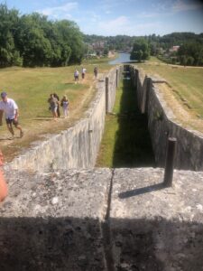 Garés sur un parking en plein soleil nous abandonnons nos véhicules pour découvrirle site des sept écluses construit sous Henri IV…avant la pause déjeuner …