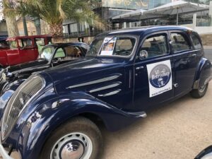 Notre club a honorer la promesse faite à Jean-Paul : venir exposer la 402 sur les quais lorsque sa restauration sera achevée; Dominique notre vice – président au volant et notre président Raymond à ses côtés ont présenté la 402 qui a suscité une bel intérêt du public