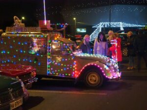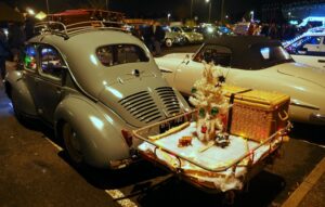 47 véhicules , dont un grand nombre superbement illuminés accueillis dès 14H par Valérie BARTHE CHENEAU, maire de la commune sur l’Esplanade de Beraire cela représente un magnifique plateau d’autant que 41 véhicules ont trente ans d’âge voire beaucoup plus comme la 202 Peugeot d’Alain ou l’Hotchkiss de Jean Yves!