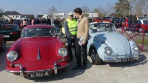 Notre club lui a offert la plaque RETROCHAP 2026 et Jean Claude leur a servi de guide pour présenter quelques véhicules exposés. Ils ont fait aussi la connaissance de Denis REIG, maire de Bucy St Liphard mais aussi adhérent RETROCHAP !