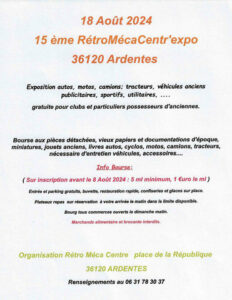 15ème RétroMécaCentr’expo le 18 Août 2024 à Ardentes 36120